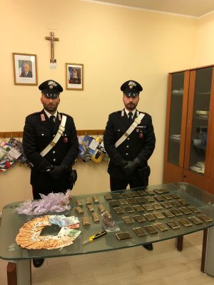 Sono quindi scattate le manette per il giovane marocchino 40enne pregiudicato, operaio presso i cantieri navali e residente a Collemarino di Ancona. Sequestrati ben 5 chili di hashish suddivisi in una cinquantina di panetti da un etto ciascuno. Inoltre, nel corso dei successivi accertamenti, presso l’indirizzo di residenza è stato anche rinvenuto un esiguo quantitativo di altra sostanza stupefacente, circa 10 grammi tra hashish e marijuana, verosimilmente detenuta per il semplice uso personale; sempre presso l’abitazione, all’interno di una cassaforte a muro, sono stati anche recuperati, e posti sotto sequestro, contanti per un valore di 2.500 euro, ritenuti provento dell’attività illecita Nella stessa notte l’arrestato è stato collocato presso la casa circondariale di Ancona Montacuto, dove permarrà fino all’interrogatorio del Gip. Ironia della sorte, per lo stesso preciso motivo, il marocchino era già stato sottoposto – pur senza risultato e nel corso dello stesso pomeriggio – ad analogo controllo dai carabinieri di Pesaro, anche loro allertati dal modello dell’autovettura ed insospettiti dal comportamento tenuto dal guidatore al momento del fermo. Indaga la Tenenza di Falconara su eventuali altri soggetti coinvolti nel narcotraffico.