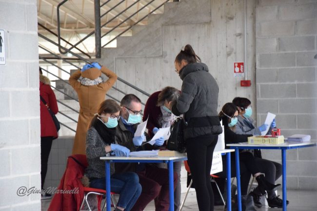 Erano un migliaio questa mattina i candidati che sono andati a sostenere la prova scritta finalizzata alla formazione di idonea graduatoria a tempo determinato per infermieri, tenutasi al Palarossini alle 9. La prova non è stata infatti rimandata ma si è tenuta regolarmente adottando però tutte le misure di prevenzione quali: le distanze delle persone nel palazzetto non inferiori ad un metro, e la distribuzione di mascherine e guanti sia al personale addetto alla sorveglianza che ai candidati che ne facevano richiesta.