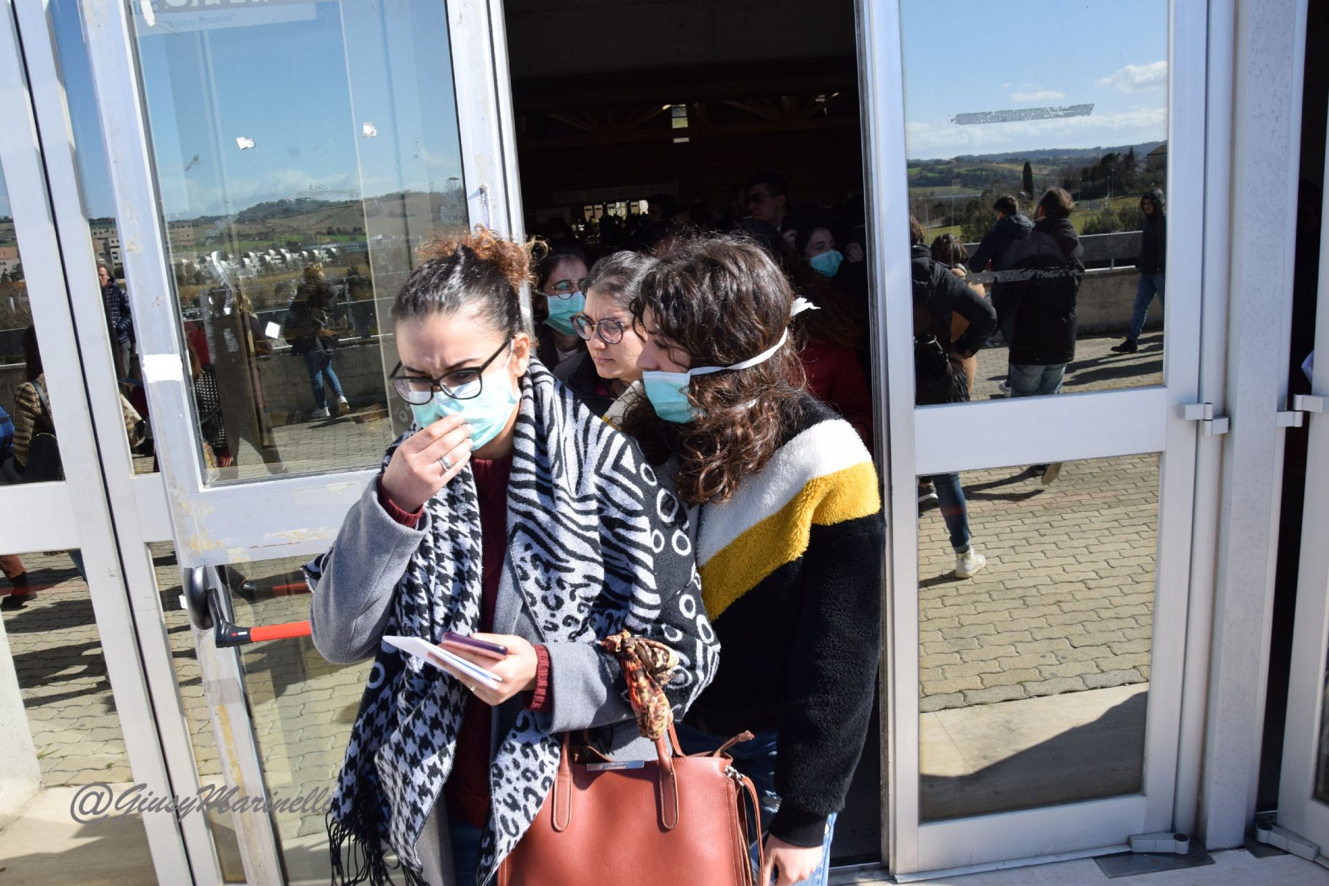 A giudicare dalla presenza dei candidati, nessuno sembra essersi tirato indietro per timore del Coronavirus. «Che ci fossero un po’ meno persone lo speravamo – dicono Emilia Gambuto e Noemi Fabbretti -. Non ci spaventa comunque questo esame o le modalità con le quali viene svolto. Piuttosto – commentano – è l’idea un domani di trovarsi di fronte ad un tampone positivo e doversi per forza vedere in quarantena perché si è stati a contatto col paziente. Troviamo comunque che la prevenzione adottata oggi – continuano – sia giusta». Noemi Fabbretti inoltre «pur sapendo che avrebbero distribuito la mascherina, ho deciso di portarmene anche una da casa».