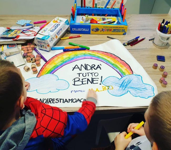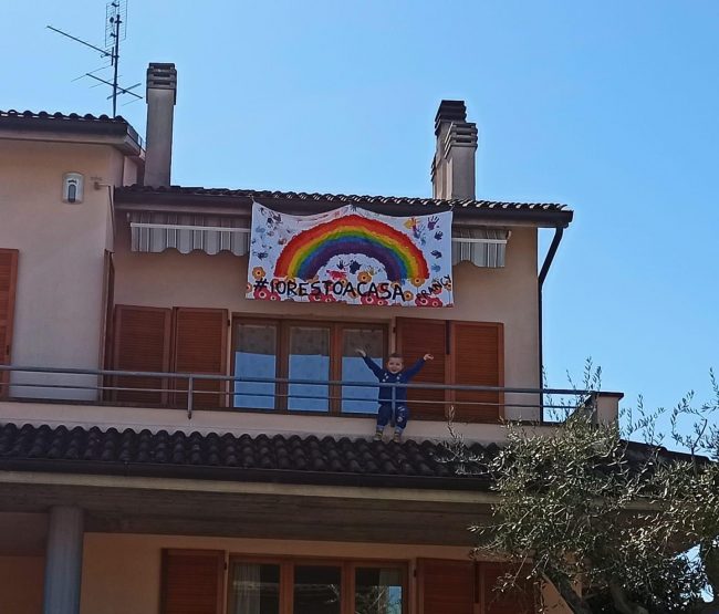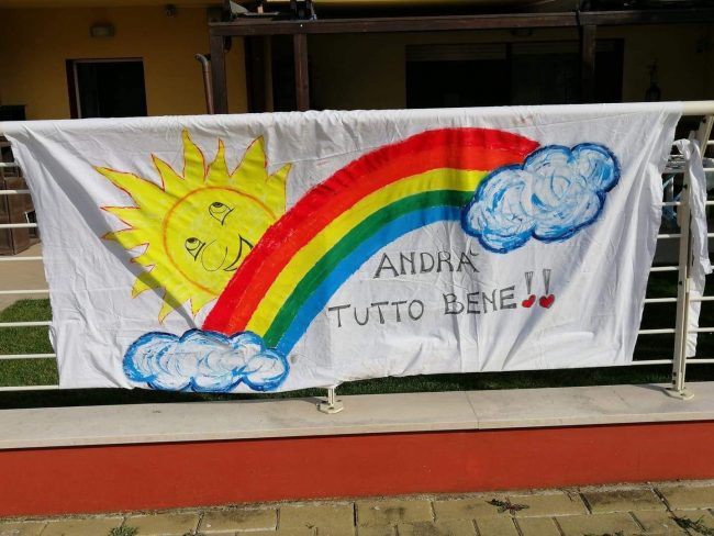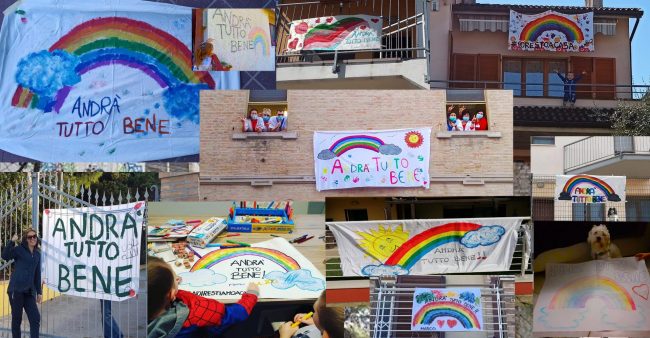 Il Coronavirus fa paura a tutti. Ma c’è anche la voglia di reagire, di guardare con ottimismo a quando questo brutto periodo finirà, speriamo presto, e tutti potremo di nuovo scendere in strada senza mascherine, senza stare distanti dai nostri cari con la rinnovata gioia di stare insieme e abbracciarci con ancora più enfasi. E allora la paura lascia spazio a messaggi di speranza, che si traducono in arcobaleni. Ne spuntano ovunque, da balconi, cancelli, finestre. E non potendoli ammirare durante una passeggiata, a strizzare l’occhio ai curiosi lo si fa dai social, finestra virtuale sul mondo. I piccoli artisti in genere sono i bambini, costretti a stare in casa fin dalle prime ordinanze in cui veniva disposta la chiusura delle scuole di ogni ordine e grado. Per tenerli a bada, ma anche spiegando loro che con i colori e un bel disegno le persone, soprattutto quelle anziane e malate, si sentono meglio, i genitori sono riusciti a tradurre in meravigliosi arcobaleni un messaggio di positività e speranza. Ne abbiamo raccolti alcuni, tocco d’artista di famiglie residenti nei vari quartieri di Jesi (Monte Tabor, via Roma e San Francesco), a Castelbellino Stazione, a Monte San Vito (uno striscione persino appeso alla residenza protetta), a Morro d’Alba e uno sul cancello dell’abitazione della famiglia di Talal e Hind Karajah titolari del ristorante “Il Tesoro dei Pirati” a Marzocca di Senigallia. Di arcobaleni coloratissimi ne spuntano ovunque, come i messaggi positivi che insieme al rispetto delle regole, aiuteranno a superare questo momento.