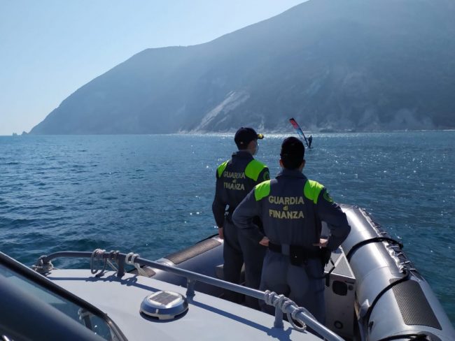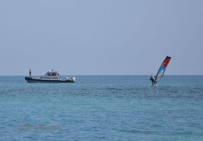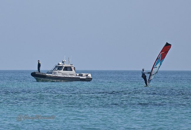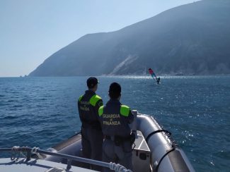 Il Comparto Navale della Guardia di Finanza durante l’avvistamento del surfista