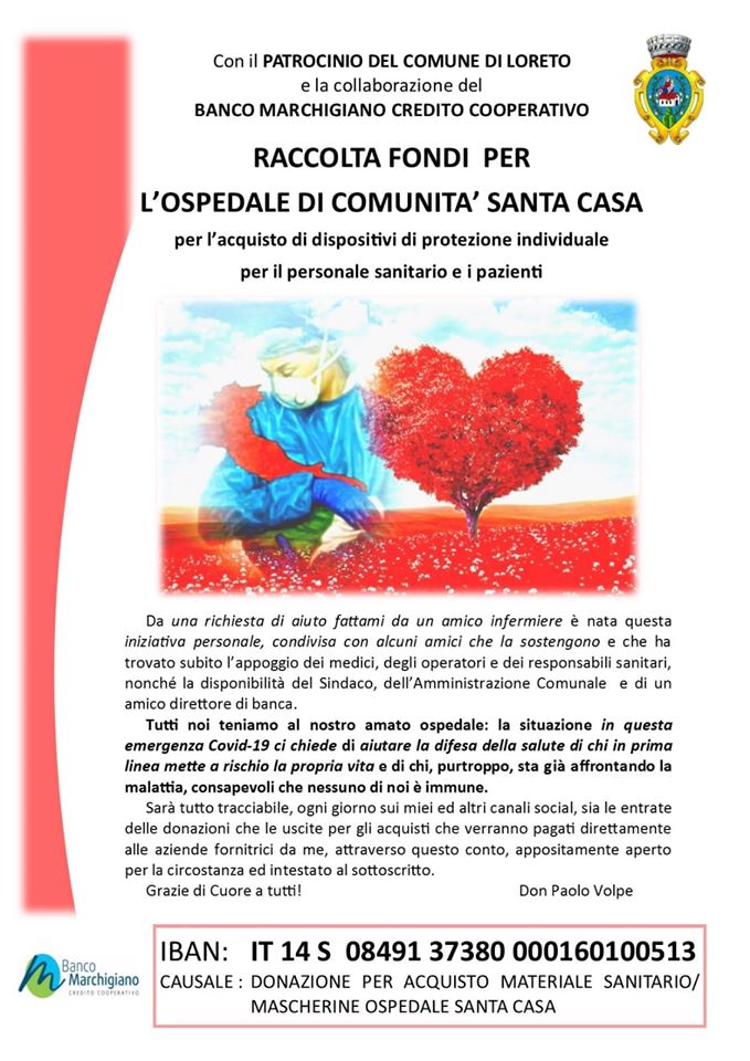 Lo scorso 23 marzo i casi di contagio erano 2. In questa fase emergenziale anche la città mariana ha attivato una raccolta fondi per l’ospedale di comunità Santa Casa. I fondi serviranno ad acquistare e donare materiale, come ad esempio le mascherine, agli operatori sanitari che lavorano nel presidio ospedaliero. E’ stato don Paolo Volpe, sacerdoto molto amato dai concittadini, a lanciare l’iniziativa. «Da una richiesta di aiuto fattami da un amico infermiere è nata questa iniziativa personale condivisa con alcuni amici che la sostengono e che ha trovato subito l’appoggio dei medici degli operatori e dei responsabili sanitari nonché la disponibilità del sindaco, dell’amministrazione comunale, di un amico direttore di banca. – ricorda don Paolo – Tutti noi teniamo al nostro amato ospedale: la situazione in questa emergenza Covid-19 ci chiede di aiutare la difesa della salute di chi in prima linea mette a rischio la propria vita e di chi, purtroppo, sta già affrontando la malattia, consapevoli che nessuno di noi è immune. Sarà tutto tracciabile ogni giorno sui miei e su altri canali social, sia le entrate delle donazioni che le uscite per gli acquisti che verranno pagati direttamente dalle aziende fornitrici da me, attraverso questo conto appositamente aperto per la circostanza ed intestato al sottoscritto, Grazie di cuore a tutti».