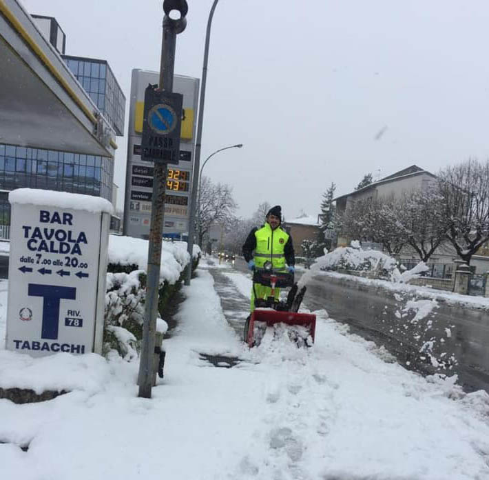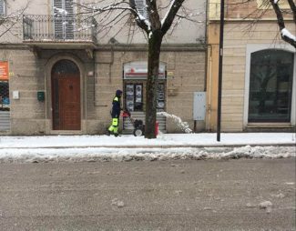 Fabriano innevata, con spazzaneve e protezione civile al lavoro per ripulire i marciapiedi. Se ieri mattina la spolverata bianca si era sciolta quasi subito, dopo che nella nottata è tornato a fioccare stamattina la città si è svegliata con circa15 centimetri di neve in centro e anche 20-30 in alcune frazioni. Non si sono però registrati disagi perché le sedi stradali sono stati subito ripulite anche dal ghiaccio e il transito dei pochi mezzi in strada è stato agevolato. Le condizioni metereologiche avverse e la neve di primavera stavolta non hanno cambiato la quotidianità della maggior parte dei cittadini, chiusi in casa nel rispetto delle disposizioni governative anti-Covid 19. Dopo il Dpcm firmato ieri dal premier Conte si sono inasprite le sanzioni per chi viola il divieto di uscire di casa: oltre alla denuncia per l’inosservanza alle disposizioni che prevede una ammenda di 206 euro, si è aggiunta una multa che può andare da 400 a 3000 euro. Per gli spostamenti inderogabili e comprovati da necessità stringenti resta necessaria l’autocertificazione.