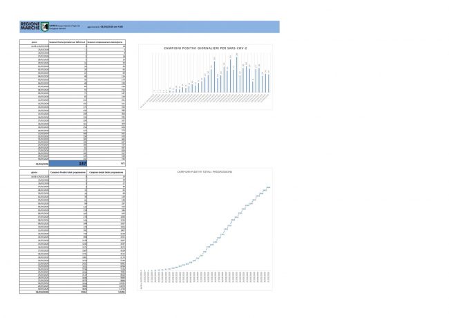 Coronavirus, altri 137 nuovi casi nelle Marche su un totale di 572 campioni processati. Continua a scendere il livello degli ulteriori contagi. C’è da dire, però, che rispetto all’ultimo tranche sono stati esaminati meno tamponi: ieri erano stati 745. In totale, dall’inizio dell’epidemia, i marchigiani risultati positivi al Covid-19 sono 3.962. Nella provincia di Ancona, i casi sono 1.174, 58 in più rispetto all’ultima tranche. A Pesaro i contagi sono 1.722, a Macerata 506, a Fermo 263 ed Ascoli 224. In terapia intensiva ci sono 168 persone, di cui 47 ricoverate a Torrette. La quarantena è seguita da 6.904 persone, di cui 793 operatori sanitari. I guariti salgono a 29, 210 i pazienti dimessi dalle strutture ricettive. Dall’inizio della pandemia, i decessi sono 477. Al link il bollettino completo del Gores.