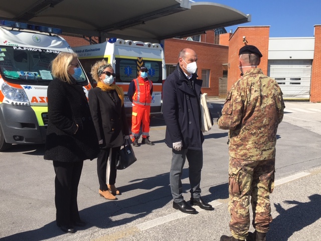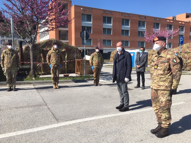 Grande soddisfazione e disponibilità di collaborazione sono state espresse anche dai sanitari dell’ospedale Carlo Urbani, rappresentati dalla direttrice del presidio Sonia Bacelli, dal dirigente dell’Unità operativa Medicina dottor Marco Candela e dal dottor Khaled Arab dell’unità 118. «Ho visto una bella gioventù italiana – ha detto il dottor Candela rivolgendosi al comandante di vascello – mi ricorda la mia gioventù, siamo tutti qui per sconfiggere questo virus. Un plauso a questa iniziativa, certamente utilissima. Ma sono orgoglioso di dire che il nostro ospedale ha retto bene a questa emergenza, anche prima del vostro arrivo. Abbiamo accolto 119 pazienti Covid-19 positivi, è la struttura dell’Asur con il maggior numero di pazienti positivi della regione».