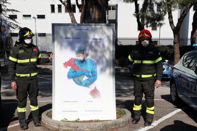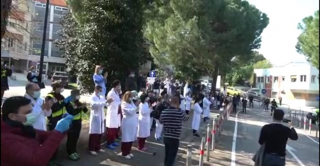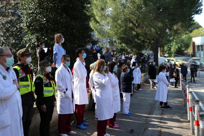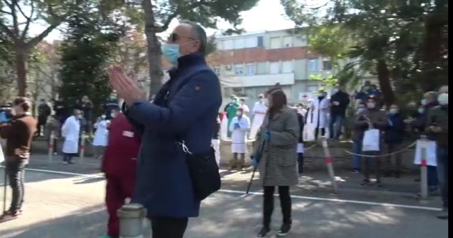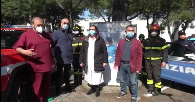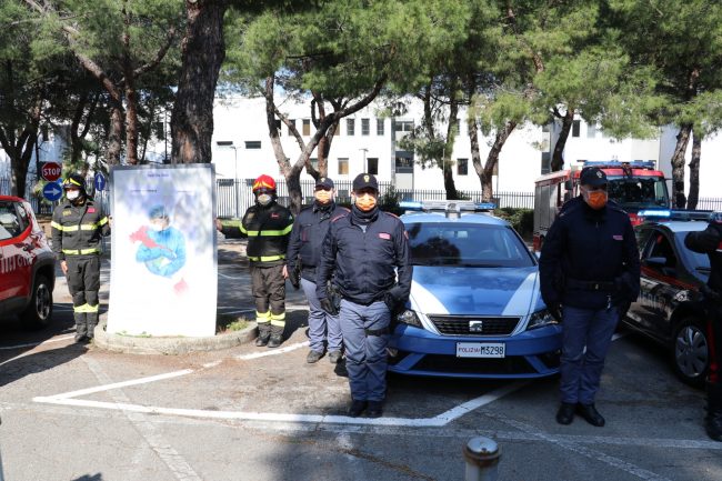 L’Inno di Mameli e le sirene delle forze dell’ordine. E’ l’omaggio reso questa mattina da vigili del fuoco, finanzieri, poliziotti, carabinieri, agenti della polizia locale, penitenziaria e operatori della guardia costiera a tutto il personale sanitario dell’Inrca impegnato a contrastare il Coronavirus. Giovedì era toccato a Torrette. Il copione è stato lo stesso: applausi, emozione e un ringraziamento infinito. Tanti gli infermieri e i medici che sono usciti dall’ospedale per prendersi l’applauso delle forze dell’ordine.