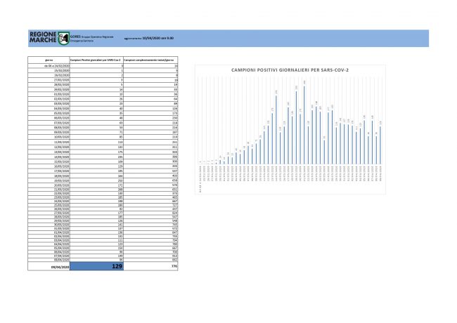 Coronavirus: superata quota 5mila contagi. Nelle ultime 24 ore sono 129 i nuovi casi e 776 i tamponi analizzati nei laboratori marchigiani. Dall’inizio della pandemia, si sono ammalate 5.084 persone. Con gli ultimi dati, emerge un’incidenza del 16,6%. Ieri si era fermata al 14,5%. La settimana scorsa, la media era del 18%. Rispetto al bollettino di ieri, sono diminuiti i ricoveri in terapia intensiva: 127 a fronte dei 133 dichiarati ieri. In 36 si trovano all’ospedale di Torrette. La quarantena è seguita da 8.144 persone, di cui 1.135 operatori sanitari. Cresce ancora il numero di pazienti guariti e dimessi dalle strutture ospedaliere: sono 1.086. Per quanto riguarda la provincia di Ancona, i contagi sono complessivamente 1.501, 20 in più rispetto all’ultimo bollettino.