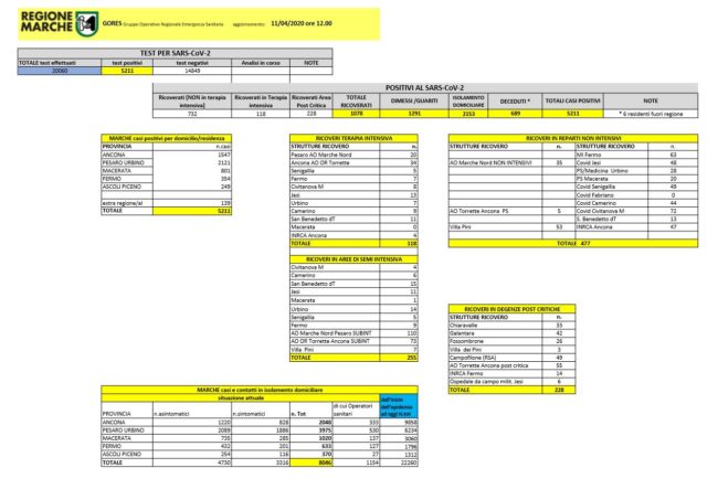 Sono 127 i nuovi casi di Coronavirus nelle Marche su 1090 tamponi effettuati nelle ultime 24 ore. E’ quanto emerge dal bollettino di questa mattina del Gores, dopo gli ultimi esami effettuati nei laboratori regionali.