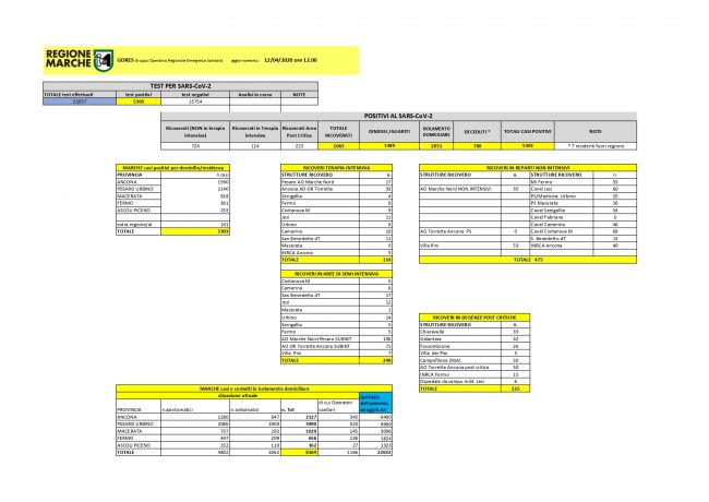 Sono 92 i nuovi casi di Coronavirus nelle Marche. Lo ha comunicato il Gores nel bollettino odierno, dopo l’esame degli ultimi 997 tamponi effettuato nei laboratori regionali.