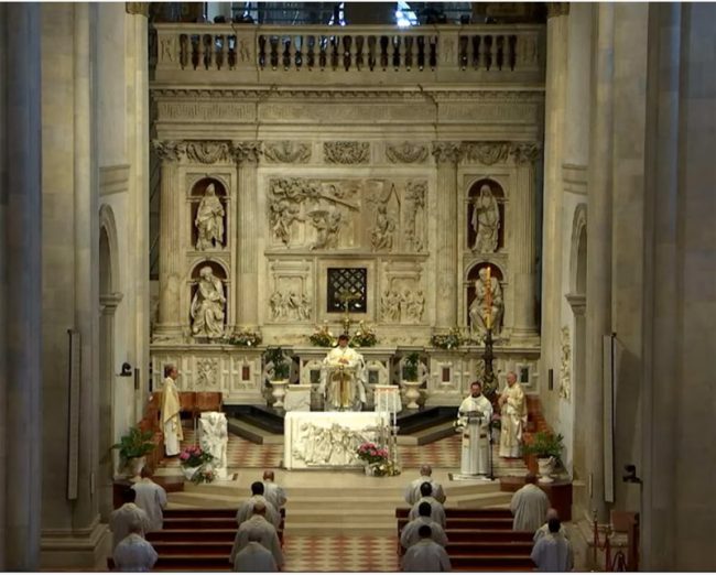 Il vescovo di Jesi, mons, Gerardo Rocconi, stamattina in diretta fb dalla cattedrale di San Floriano