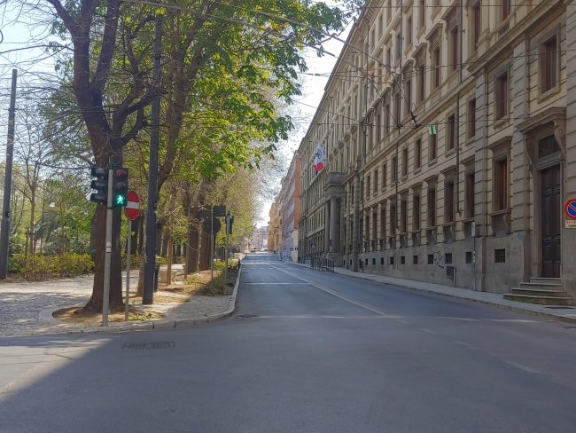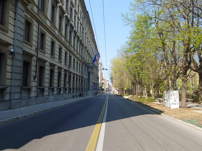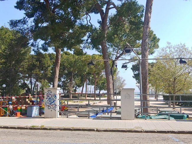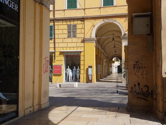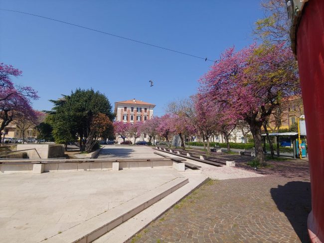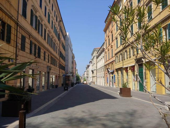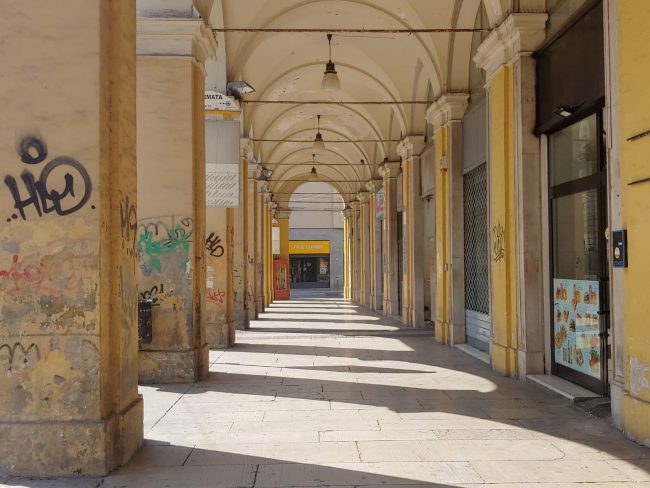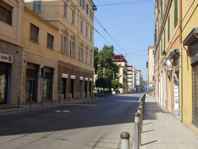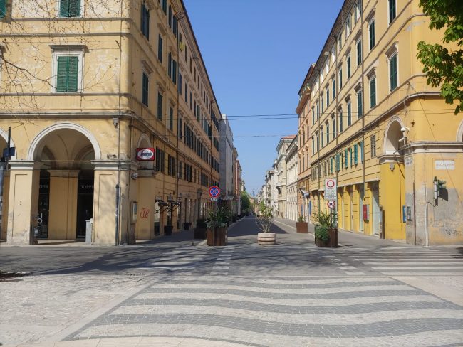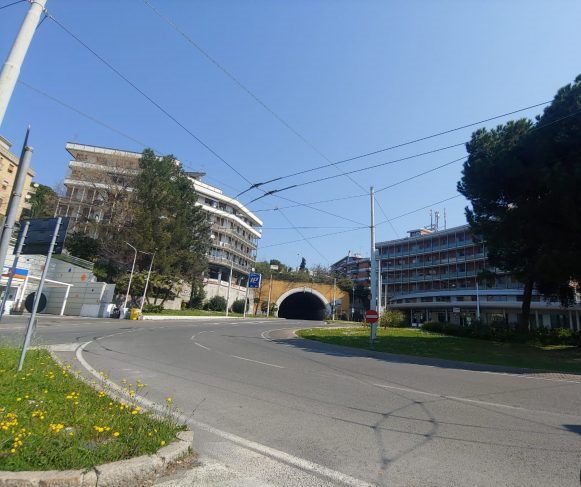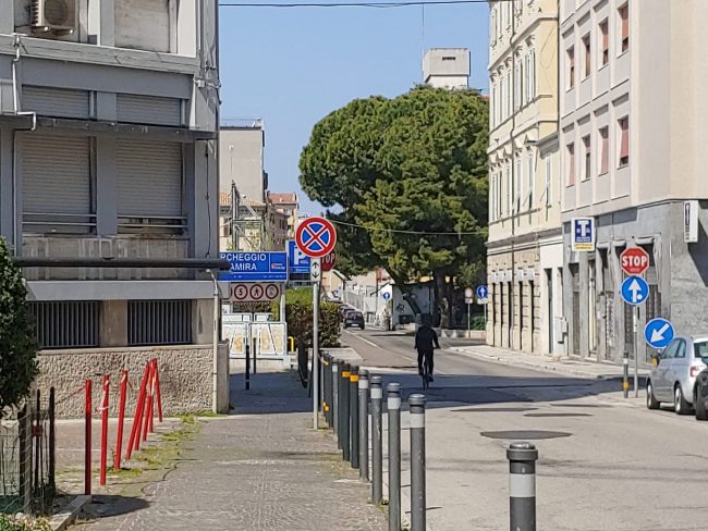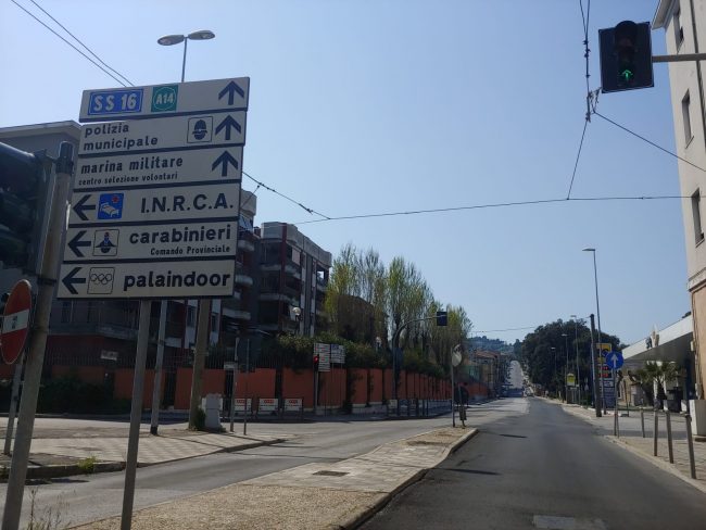 Dalle finestre, il sottofondo di chi sta preparando il pranzo, tra il rumore delle posate e il profumo dell’arrosto. Dai balconi, il vociare di chi si scambia gli auguri a distanza con i vicini. Nei cortili dei palazzi, le risate dei bimbi che giocano. Per strada, il silenzio quasi totale, smorzato solamente dai passi di chi porta fuori il cane e dal fragore delle auto lungo la strada. E’ una Pasqua surreale quella vissuta dagli anconetani. Colpa del Coronavirus e della quarantena forzata che dovrà essere mantenuta almeno fino al 3 maggio. Questa mattina, la città – dalle Palombare, al centro passando per il Passetto – era pressoché vuota. Pochissimi i cittadini per strada. La maggior parte aveva con sé l’amico a quattro zampe per la consueta passeggiata. Altri, bimbi piccoli per mano o in passeggino. Il colpo d’occhio, oltre alla tavola del mare del Passetto, è quello dato dalle bandiere tricolori appese ai balconi dei palazzi e i messaggi di speranza: ‘Andrà tutto Bene’.