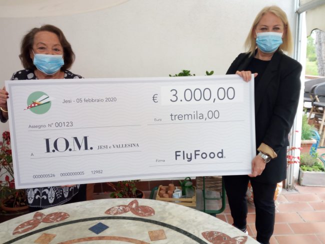 Da Flyfood 3mila euro per lo Iom di Jesi e Vallesina. Grazie alla campagna #unsorrisoadomicilio, la brillante start-up jesina che si occupa di ordinazione di cibo via web e servizi di consegna è riuscita ad accumulare un tesoretto da destinare a favore dell’associazione impegnata nell’assistenza e cura di pazienti oncologici. Una somma importante raggiunta in un solo mese e che arriva proprio ora in un momento di emergenza. I tre giovani soci Marco Bigi, Andrea Verdolini e Roberto Falappa in questi giorni hanno fatto recapitare l’assegno alla presidente della onlus Anna Quaglieri e al direttore responsabile Maria Luisa Quaglieri. «Siamo fieri di aver messo in campo un’iniziativa di tutto rispetto, una campagna partita lo scorso novembre – dicono i tre imprenditori -. Eravamo consapevoli che la struttura di Flyfood e la diffusione del servizio avrebbe garantito una donazione significativa. Abbiamo subito riscontrato un engagement molto alto e questo ci dimostra che la capacità dell’impegno solidale è quello di creare una cassa di risonanza importante». Parole di profonda gratitudine dalla presidente Anna Quaglieri ai tre ragazzi: «La vostra iniziativa, così ricca di amore e solidarietà è stata vincente. Il vostro aiuto, così generoso, è un dono immenso. Con questo gesto, non potete immaginare a quanti pazienti speciali avete garantito cure e sollievo».