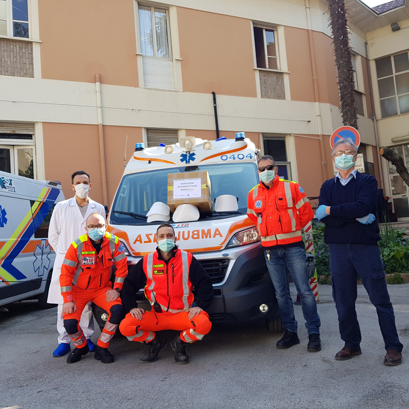 Il 118 di Senigallia ringrazia il Rotaract Club cittadino per la donazione di un nebulizzatore per sanificare le ambulanze e di 45 visiere, per dotare ogni operatore del 118 di un presidio personale.
