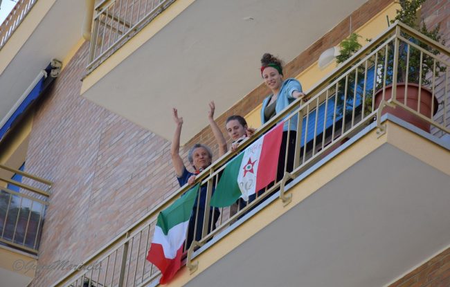 Bandiere tricolori appese alle finestre e l’intonazione di ‘Bella Ciao’. Ecco come è stato festeggiato ad Ancona il 25 aprile nel mezzo dell’emergenza Coronavirus. Dovendo rimanere a casa a causa del lockdown, in tanti – come segno di vicinanza e unità – hanno deciso di appendere il tricolore della bandiera italiana fuori dai balconi e dalle finestre dei palazzi. Alle 15, su invito dell’Anpi nazionale, è risuonato il ritornello di ‘Bella Ciao’, la canzone simbolo della Resistenza.