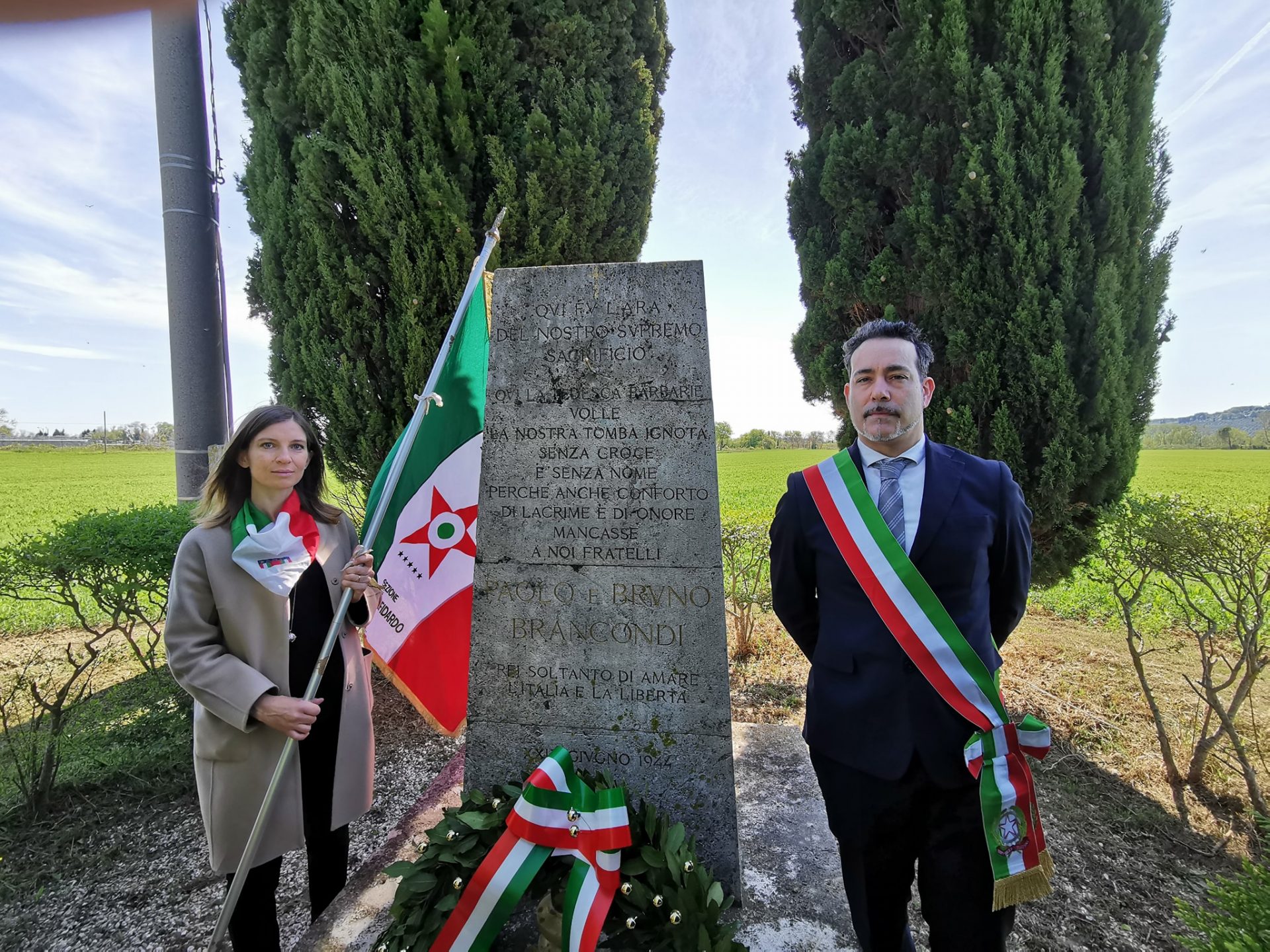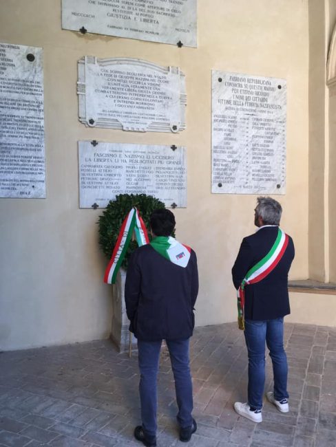 Il sindaco di Genga, Marco Filipponi, depone la corona di alloro ai monumenti commemorativi di Genga capoluogo e Camponocecchio. Presente il presidente Provinciale Anpi, Daniele Fancello.