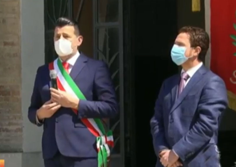 A Santa Maria Nuova, il sindaco Alfredo Cesarini durante la commemorazione del 25 Aprile ha detto:«Non avrei mai immaginato di vivere questa mia esperienza di sindaco trovandomi ad affrontare e combattere in prima linea contro un nemico invisibile che ci costringe a stare lontani».