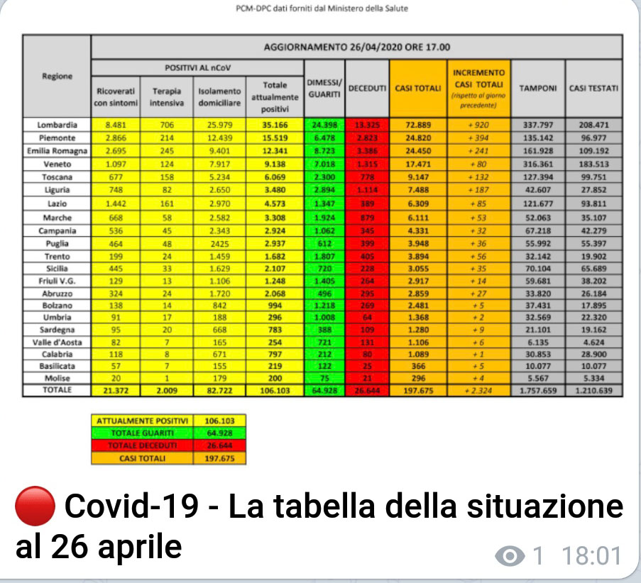 Nessuno risiedeva, quindi, nella provincia di Ancona come conferma il dato del Gores, che comincia a consolidarsi e che aggiunge alla statistica però la morte di altri 3 degenti collegata al contagio del Covid 19 ma avvenuta nei giorni scorsi, per i quali è stata confermata in data odierna la diagnosi, trasmessa con la documentazione clinica. Si tratta di tre donne: una 90enne di Matelica e una 85enne di Petriolo, che erano ricoverate al Covid Hospital di Civitanova e una 89enne di Macerata deceduta a Camerino. In totale, nella regione sono 884 le vittime del coronavirus (542 uomini e 342 donne) di cui 137 nella nostra provincia (477 nel Pesarese, 187 nell’Anconetano, 63 nel Fermano e 12 nell’Ascolano, più 8 residenti in altre regioni). Il 94,4% aveva patologie pregresse, l’età media è di 80,2 anni. Quello di oggi è il dato più basso sui decessi che si è regisgtrato dell’inizio di marzo ad oggi.
