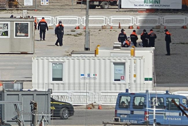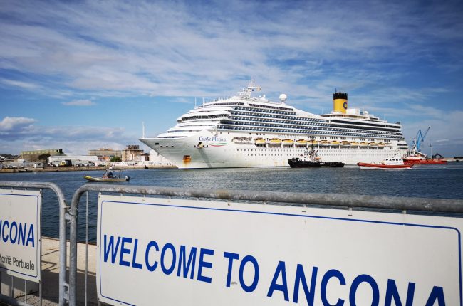 La Costa Magica è entrata al porto dorico. L’ingresso questa mattina attorno alle 8,30 e poi l’attracco – lento – alle banchine 19-20, dove il colosso da 272 metri rimarrà per le prossime settimane. A bordo 617 membri dell’equipaggio, di cui 44 italiani. Da domani, gli operatori sanitari inizieranno la prima tranche di tamponi per rilevare la presenza del Covid-19 a bordo. Da quanto risulta alla Prefettura, almeno 130 persone avrebbero contratto il virus, ma in maniera lieve. All’approdo erano presenti, tra gli altri, il sindaco di Ancona Valeria Mancinelli che ha rassicurato ancora una volta sull’estrema sicurezza in cui si svolgeranno le operazioni sanitarie, tutte rigorosamente effettuate a bordo nave: «Non c’è nessun pericolo per la città. Nessuno metterà piede a terra fino a che non saranno valutate le condizioni di salute di chi è a bordo. Man mano che saranno fatte le verifiche, verranno fatte sbarcare le presone e ‘impacchettate’ da Costa Crociere per raggiungere casa. Nessun contatto con la città, neanche casuale. In questa situazione, il porto sta facendo il suo dovere. Si esercita un ruolo di livello non solo quando le cose sono esaltanti e va tutto bene, ma anche quando occorre assumersi responsabilità difficili, come questa». Il presidente dell’Authority Rodolfo Giampieri: «Perchè l’evacuazione ad Ancona? Perchè il nostro è un porto importante e internazionale e perchè negli altri porti ci sono già altre navi. Ancona può dimostrare la sua efficienza organizzativa per poter dare una risposta a un’emergenza mondiale. Non dimentichiamoci che stiamo riportando a casa una nave italiana con dentro dei lavoratori. La comunità è preoccupata, ma la rassicurazione è che nessuno entra ed esce dalla nave. Chi scenderà sarà portato in sicurezza verso casa con i mezzi messi a disposizione da Costa». Il coordinamento delle operazioni è assicurato dalla Capitaneria di Porto di Ancona, guidata dal controammiraglio Enrico Moretti. Presente al porto anche il dg Asur Nadia Storti: «Un nostro medico salirà già oggi a bordo per valutare lo stato di salute dell’equipaggio, i componenti sono tutti giovani, non ci aspettiamo problemi. Da domattina verranno eseguiti i tamponi per capire se le persone sono ancora positive al virus». Per processare ogni sessione, serviranno tra le 12 e le 24 ore. Per tutto il tempo dell’evacuazione, l’area dell’ormeggio sarà off limits grazie ai presidi di guardia di finanza e polizia. In banchina sono state posizionate tre strutture-container a disposizione del personale sanitario: ambulatorio medico per la vestizione pulita, un modulo bagni e docce, un modulo polifunzionale. Tutta l’area è delimitata da transenne vincolate. Sono già attivi un sistema di videosorveglianza con 4 telecamere, tutte operative, e servizio di guardia dedicato sottobordo.
