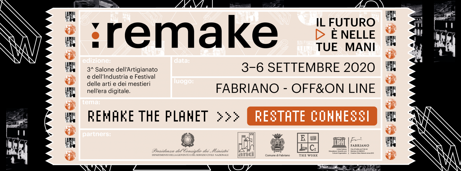 Remake si terrà: a Fabriano, un evento online e offline, tra tradizione e innovazione. Adesso sono ufficiali anche le date. Dal 3 al 6 settembre è stata organizzata la terza edizione del Festival delle Arti e dei Mestieri Digitali, erede della Mostra dell’Artigianato. «L’evento – fa sapere una nota stampa del Comune di Fabriano – si svolgerà con una formula almeno in parte digitale, e se possibile con la presenza fisica di espositori e visitatori: i momenti di formazione e di networking si terranno tutti online, come anticipato dall’Assessore alle Attività Produttive Barbara Pagnoncelli. L’intenzione è invece di effettuare in forma fisica la Mostra Mercato, sfruttando gli spazi al chiuso offerti dai suggestivi palazzi del Centro Storico di Fabriano, che danno la possibilità di monitorare gli accessi in forma contingentata. Se non dovesse essere possibile, anche la Mostra Mercato si svolgerà in forma digitale, sfruttando le nuove tecnologie per mettere in contatto gli espositori con i potenziali clienti: al centro, l’obiettivo di coinvolgere tanti espositori (furono 90 l’anno scorso) e dare un’opportunità di ripresa e rilancio ad artigiani, creativi, produttori agroalimentari. Nel rispetto delle norme sul distanziamento sociale e sugli assembramenti che saranno man mano definite dal governo, Remake offrirà comunque un calendario ricco di appuntamenti, dedicati alla riflessione sul Pianeta». Cambiamento climatico, economia circolare, energie rinnovabili, filiere corte e intelligenti, gli sconvolgimenti sociali ed economici determinati dal Covid-19: tanti aspetti di una battaglia globale per assicurare un futuro all’Umanità, e che saranno discussi a Remake, tra tecnologia, rispetto dell’ambiente e vicinanza tra i popoli, nello spirito di Fabriano Città Creativa Unesco. Nelle prossime settimane saranno comunicate tutte le novità del Festival edizione 2020, gli aggiornamenti nel sito www.remakefestival.it e nei social: la pagina Facebook e l’account Instagram Remake Festival.