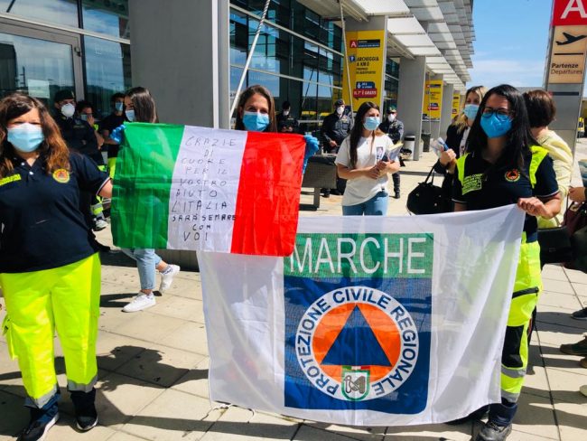 Questa mattina un ATR72 della Guardia di Finanza proveniente dal Comando operativo aeronavale di Pratica di Mare ha riportato a Tirana la task force sanitaria di 59 infermieri albanesi che ha supportato il sistema regionale nell’emergenza del Coronavirus. All’aeroporto di Falconara era presente l’assessore Angelo Sciapichetti per un saluto ed un ringraziamento a nome della Regione Marche. Medici e infermieri erano arrivati il 21 aprile e sono stati suddivisi in cinque gruppi che si sono recati nelle strutture sanitarie e nelle residenze per anziani per assistere malati e popolazione anziana. Il presidente dell’Albania Edi Rama aveva ringraziato l’Italia per l’assistenza data dopo il sisma che aveva colpito il Paese delle Aquile: «Cerchiamo con questo gesto di ricambiare il bene ricevuto dall’Italia che consideriamo un Paese fratello» aveva detto. L’Aerdorica, struttura che è stata attiva per tutto questo periodo di Covid, ha salutato e ringraziato lo staff dei medici per l’impegno profuso a favore dei pazienti. «Abbiamo buonissimi rapporti con l’Albania – ha detto Camine Bassetti, ceo Aerdorica – siamo due paesi vicini e speriamo di rilanciare i rapporti con nuove rotte civili e commerciali. La nostra struttura ha sempre garantito voli e collegamenti anche in questo difficile periodo facendo da terminale per voli a scopo medico oltre al normale traffico merci che sta riprendendo in maniera importante. Siamo assolutamente convinti che un aeroporto attivo e attrezzato abbia una funzione strategica anche in tempi difficili. In questo momento stiamo lavorando al progetto di apertura di nuove rotte così da trovarci pronti per la riapertura e per garantire i flussi passeggeri e merci alle filiere del turismo e dell’economia».