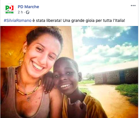 Silvia Romano, 24 anni, è stata rapita nel novembre 2018 in Kenya