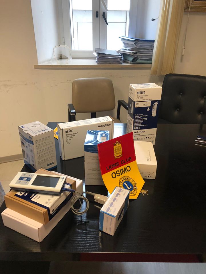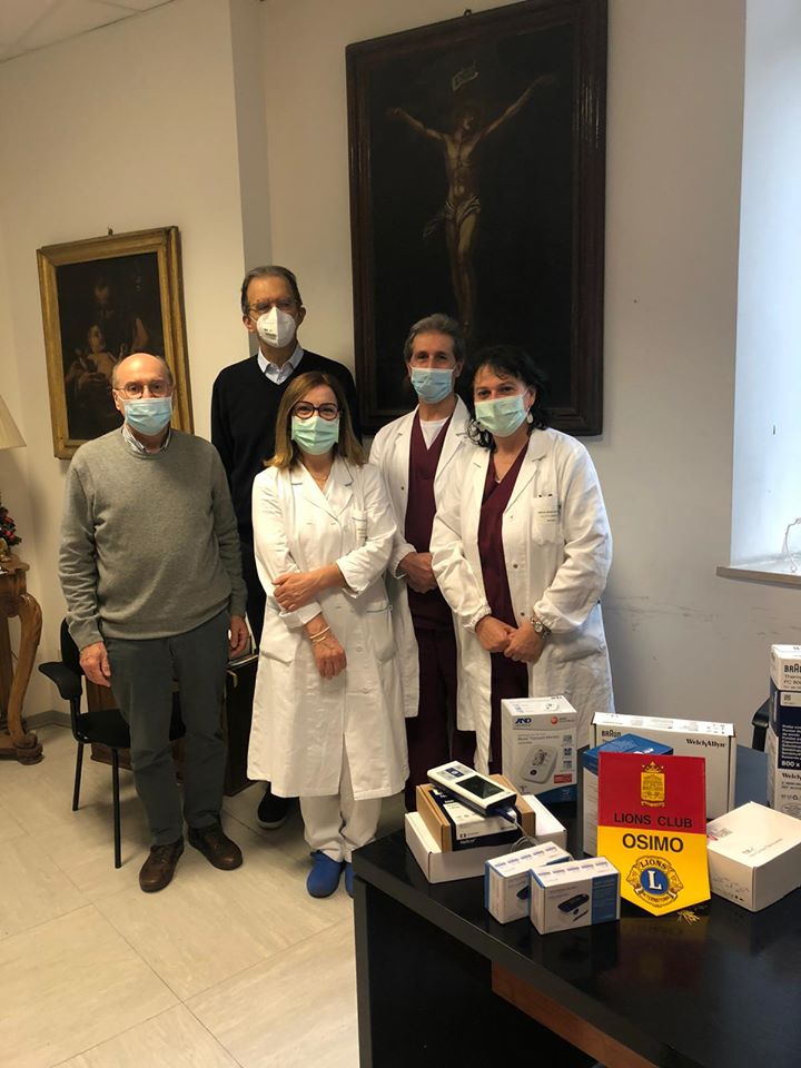 A fine aprile il Lions Club ha donato al Pronto Soccorso dell’ospedale Inrca di Osimo la strumentazione sanitaria richiesta per l’emergenza coronavirus (tra cui thermoscan, saturimetro palmare, sfigmomanometri elettronici e altro). Il materiale è stato consegnato nelle mani del direttore sanitario Maria Rosa Pallotta alla presenza del responsabile del Pronto Soccorso, il medico Adolfo Pansoni e della caposala Marinella Lucarini. Per il Lions erano presenti il presidente Ginnetti e il socio Giuliano Civerchia, a cui va il merito di esser riuscito a trovare tutti gli articoli sanitari nonostante il periodo di difficoltà per il reperimento di tali materiali.