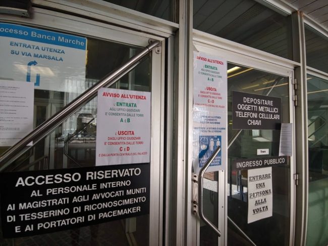 Dopo due mesi di lockdown e la decisione presa a livello nazionale di sospendere le udienze non urgenti, si rimette in moto l’attività del tribunale di Ancona. Con i dovuti accorgimenti e alcune limitazioni. Le udienze sono state messe a calendario fino al 31 maggio. Quelle penali sono poche e, dove possibile, verranno trattate con sistemi da remoto. Più ampia l’attività del civile che, a differenza del dibattimento penale, per alcuni fascicoli si adatta maggiormente alla videoconferenza. Oltre la metà del personale degli uffici si trova ancora in smartworking. L’accesso al palazzo di corso Mazzini è consentito solamente a chi indossa la mascherina. Sono stati predisposti dei percorsi differenziati per chi entra ed esce, chi sale e chi scende. Inoltre, sono stati collocati ovunque i dispenser di gel igienizzante e i cartelli che ricordano le buone usanze per ridurre il rischio contagio. «Le udienze – afferma il presidente del tribunale Giovanni Spinosa – sono state fissate fino a fine maggio perchè vogliamo procedere gradualmente. Mi sembra pessimistico pensare che la situazione epidemiologica di giugno possa essere la stessa di maggio. Ho chiesto ai giudici quali processi potevano essere fatti e quali no. Solo loro conoscono l’identità di un procedimento. Il numero di udienze penali fissate è ridotto». Non bisogna dimenticare una cosa: «che i processi penali si basano sul rapporto personale tra le parti, sul confronto tra le persone. Per esempio, un procedimento che tratta una violenza sessuale richiede ore e ore di esame della parte offesa e un controesame difficile e complesso. E’ una situazione che necessita misure imponenti di contenimento». Insomma, nella fase testimoniale c’è bisogno di un contatto visivo che con la videoconferenza può venir meno. Per accelerare i tempi e fissare più udienze a giugno, il presidente ha pensato a misure innovative, da adottare in almeno due aule.