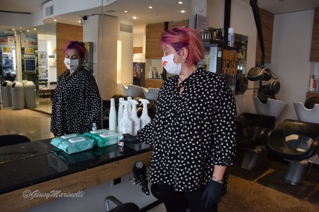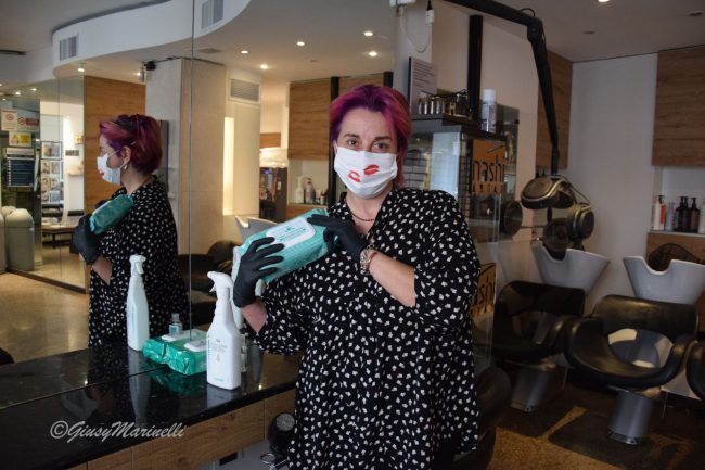 «Il 18 riaprirò – dice – con un lunedì aggiunto per recuperare e per spalmare il personale perché ‘licenziamenti’ è una parola che non voglio sentire. Oggi – prosegue – posiziono i nastri di distanziamento mantenendo il metro e ottanta richiesto ed eliminando la metà delle postazioni. Sto organizzando tutto, pensando a come vorrei trovare la riapertura se fossi io la cliente. Indubbiamente – continua – gli orari oscilleranno» dunque, per permettere ingressi contingentati su appuntamento. «Partirò sicuramente con meno clienti – aggiunge – ma non voglio sottoporre i dipendenti ad un ulteriore stress perché non è facile lavorare indossando la mascherina e la visiera». Indubbiamente, per tutti, la riapertura prevede nuove ed ulteriori spese che sono appunto quelle riguardanti tutto il materiale igienizzante per clienti e dipendenti oltre al fatto che i locali potranno ospitare la metà, o ancora meno, della clientela abituale. Una ripartenza assolutamente non facile con un grande sforzo che dovrà essere premiato.