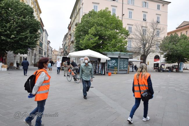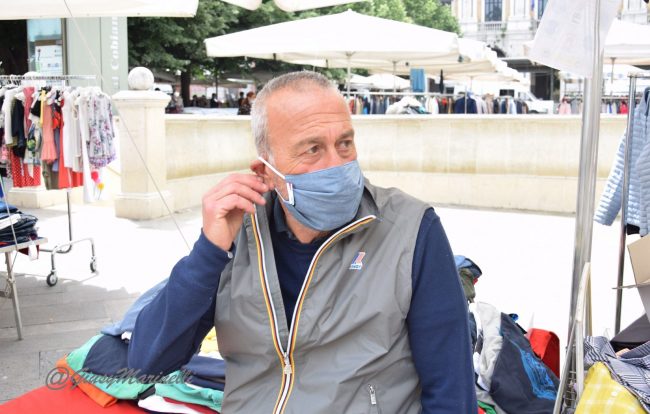 Il mercato ambulante del centro riparte. Ma con la separazione delle bancarelle. Alcune che prima dell’emergenza si trovavano lungo corso Mazzini, sono state ora collocate in piazza Roma. Una decisione, quella presa dal Comune, per aumentare gli spazi e, dunque, far rispettare le distanze di sicurezza. Nel primo giorno della riapertura, ciò che ha animato i commercianti è stata soprattutto la speranza di avere almeno una parvenza di normalità, dettata proprio dall’allestimento – dopo due mesi di stop – dei banchi. Dall’altra parte, c’è stata la consapevolezza che le difficoltà ci sono. Tra le bancarelle, è obbligatorio avere guanti e mascherina e servire un cliente alla volta. «Anche per noi è tutto nuovo – afferma Stefano Coen (piazza Roma) – ma l’importante è aver riaperto. E’ un buon passo quello che ci ha fatto fare il Comune. Questo primo giorno? Non potevamo pretendere di lavorare oggi, è servito piuttosto per conoscere la postazione, organizzarsi e insegnare al cliente come comportarsi». Sulla divisione dei banchi: «Qualcuno verrà penalizzato, almeno all’inizio, poi i clienti sapranno dove trovarti». «Il primo giorno di apertura – dice Leonardo Bianchi (piazza Roma) – è servito per tornare a una pseudo normalità. Le persone sono ancora un po’ impaurite e distaccate. Sono stato contento di rivedere le persone, avevano bisogno della presenza del mercato. Un giorno positivo e di speranza». «Se fossimo stati tutti insieme sarebbe stato meglio – commenta Mauro Baldoni (corso Mazzini) – ma bisogna stare alle regole. Riaprire il banco è stata una sensazione ottima. O si apriva oggi, o non si apriva più. Forse è stato anche troppo tardi». A vigilare sulla corretta fruizione delle bancarelle sono stati gli agenti della polizia locale e degli impiegati comunali, dotati di pettorina arancione. Domani, il debutto del mercato di via Maratta lungo il viale della Vittoria. Anche in questo caso, un trasloco reso necessario delle prescrizioni anti contagio.