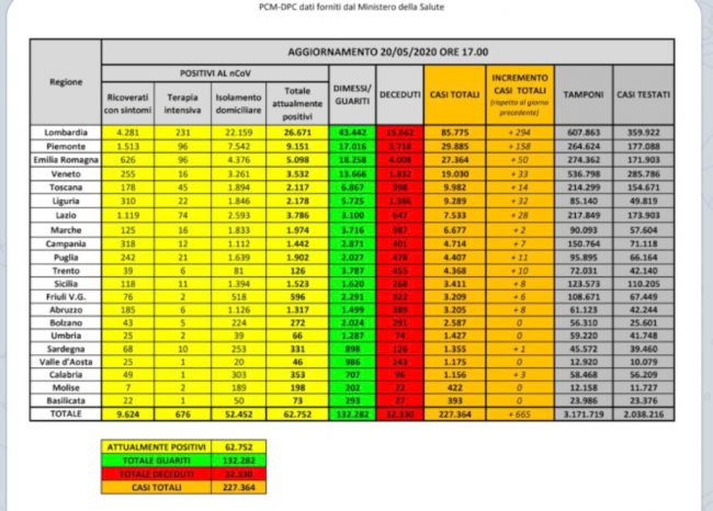 Il conto totale in regione sale a 990: 524 nel Pesarese, 215 nell’Anconetano, 164 nel Maceratese, 66 nel Fermano e 13 nell’Ascolano. L’età media dei pazienti deceduti è di poco superiore agli 80 anni e il 94,8% di loro aveva patologie pregresse. In Italia invece ad oggi sono 32.330 i decessi registrati dal bollettino della Protezione civile nazionale, 161 in più rispetto a ieri.