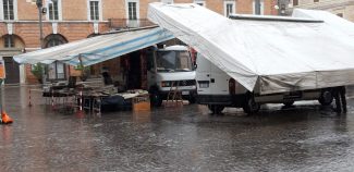 Commercio ambulante, finalmente il ritorno in piazza. Stamattina è stato un ritorno bagnato quello che ha atteso i commercianti ambulanti del mercato settimanale a Jesi. Come a dire che non bastavano le regole di sicurezza per il Covid-19 ma contro la ripartenza del commercio ambulante ha giocato anche Giove Pluvio, che dal primo mattino ha regalato rovesci violenti tanto da impedire a molti di aprire e alle persone di partecipare al mercato.