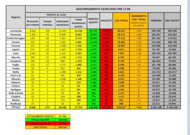 Si tratta di un uomo di 70 anni della provincia di Ancona, una persona che aveva delle patologie pregresse e che era ricoverata all’ospedale di Torrette, ad Ancona. Sinora sono 994 le persone che sono morte in regione a causa del contagio. In provincia di Macerata sono 165. Nel complesso nel 94,9% dei casi si tratta di pazienti che avevano delle pregresse patologie. L’età media delle persone scomparse è di 80,5 anni. In Italia, invece, sono 32.735 ad oggi i pazienti deceduti, 57.752 le persone ancora positive al Covid-19, e secondo i dati delle ultime 24 ore, 138.840 i guariti.