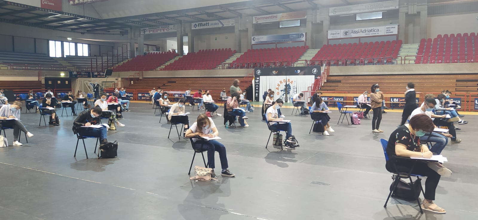 Quello che si tiene oggi al palasport “Ezio Triccoli” di Jesi sarà ricordato come uno dei primi concorsi pubblici in Italia dopo l’emergenza Covid. A seguito della pandemia, infatti, era stata disposta la sospensione di tutti i concorsi nel nostro paese.«Per il nostro Comune – fa sapere una nota stampa dell’amministrazione comunale di Jeis – tale situazione aveva rinviato diverse procedure concorsuali. A cominciare dalle prime prove per il concorso per 3 posti da part time a servizio dei musei civici. In 46 i candidati che si sono presentati sui 57 che avevano superato la selezione per le due prove scritte, una il mattino, l’altra il pomeriggio. Con ingresso contingentato, muniti di dispositivi di protezione personale ed opportunamente distanziati, i candidati sono stati fatti accomodare in banchi allestiti nel campo principale del Palasport sotto il controllo della commissione di concorso».