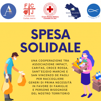 Da domani, mercoledì 27 maggio, verrà avviata nella città di Jesi l’iniziativa “Spesa Solidale”, promossa da diverse associazioni di volontariato e di promozione sociale del territorio che si sono unite tra loro per cooperare e far fronte comune alle esigenze di singoli e famiglie bisognose. Nonostante sia passata la fase emergenziale più dura dovuta alla pandemia, tanti necessitano ancora di un sostegno concreto ed efficace. L’iniziativa è promossa dalle seguenti associazioni: l’Associazione ImpAct, la Caritas diocesana, la Comunità di Sant’Egidio – Marche, la Croce Rossa Italiana – Comitato di Jesi e la Società San Vincenzo de Paoli. Nei supermercati e negozi aderenti – hanno già disponibilità alcune realtà quali Sì con te di Via Paladini, Tigotà Jesi, Conc. Buffetti di Gabriela Cardinali, Kirikù di Laura Loccioni – i clienti potranno donare parte dei loro acquisti nei punti di raccolta collocati all’interno del locale.