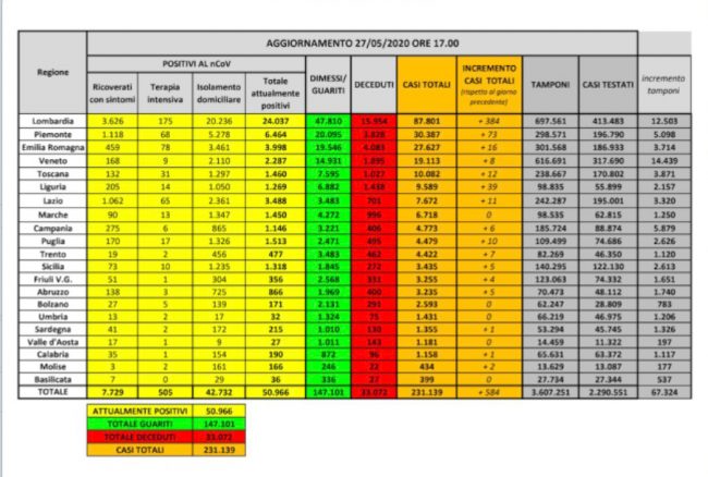 Nella struttura sono undici le persone che sono morte a causa del Coronavirus. Ieri nel dato del Gores la morte del 98enne non era stata riportata, il dato è stato aggiornato oggi. Nel complesso con lui sono 997 le persone morte nelle Marche, di cui 166 in provincia di Macerata. Nel complesso l’età media delle persone decedute è di 80,5 anni, nel 94,8% dei casi avevano delle patologie pregresse. In Italia il bilancio dei deceduti dopo il contagio del Covid 19 è 33.072 persone (+117 rispetto a ieri) mentre è arrivato a 231.139 il numero dei casi dall’inizio dell’emergenza pandemica (50.966 le persone attualmente positive) e a 147.101 quello dei pazienti guariti.