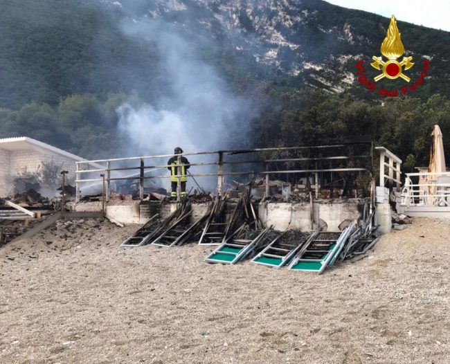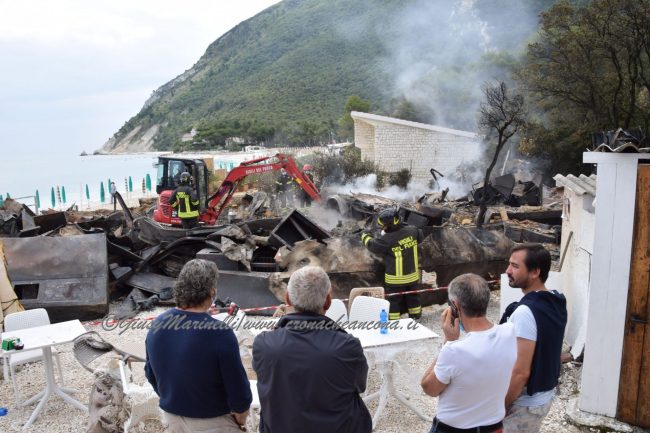 Fiamme poco dopo l’alba a Portonovo: distrutto lo stabilimento Spiaggia Bonetti. L’allarme è scattato attorno alle 6,30, è stato un fornitore a lanciarlo, ma è probabile che l’incendio fosse scoppiato già da tempo. I vigili del fuoco sono intervenuti con tre mezzi, spegnendo il rogo e mettendo in sicurezza la zona. Ma dello chalet non è rimasto che un cumulo di macerie.