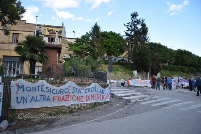 Si sono dati appuntamento questo pomeriggio, armati di striscioni, per protestare e sensibilizzare l’amministrazione comunale affinché Montesicuro torni ad essere la frazione curata che un tempo è stata. La manifestazione, che ha richiamato in strada tanti residenti, anche delle vicine Sappanico e Ghettarello, si è svolta all’altezza della rotatoria di ingresso al paese. Con gli slogan «Frazioni unite per dire basta al degrado», «Monte Non Sicuro» e «Montesicuro sta crollando! Un’altra frazione dimenticata?», i residenti hanno sottolineato nuovamente i problemi con i quali, ormai da anni, combattono.