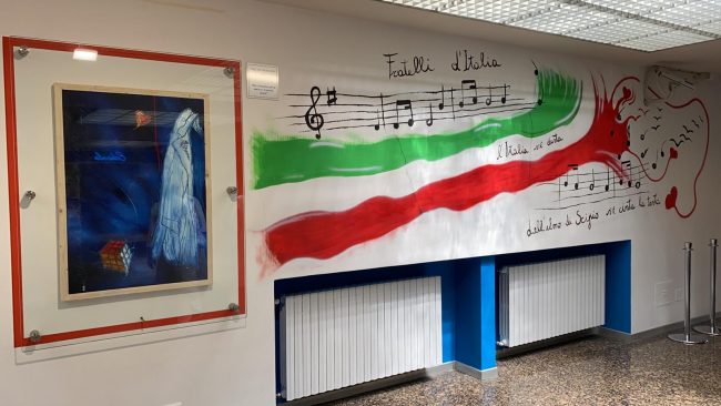 Un cuore rosso e la scritta ‘grazie’. E’ il contenuto del pannello che il 2 aprile è stato donato agli operatori sanitari di Torrette impegnati nell’emergenza Covid da vigili del fuoco e forze dell’ordine. Questa mattina, il pannello è stato collocato nei pressi dell’ingresso laterale dell’ospedale. E’ stata installata anche l’opera donata dal pittore Eugenio Morganti, creata ad hoc per l’occasione dal titolo “Non c’era posto per la musica e le parole inutili “ e il murales realizzato dallo stesso artista.