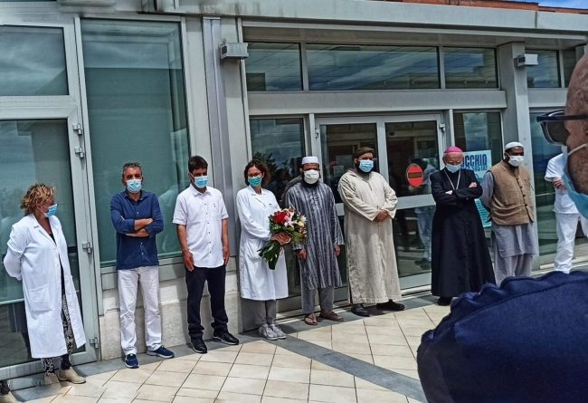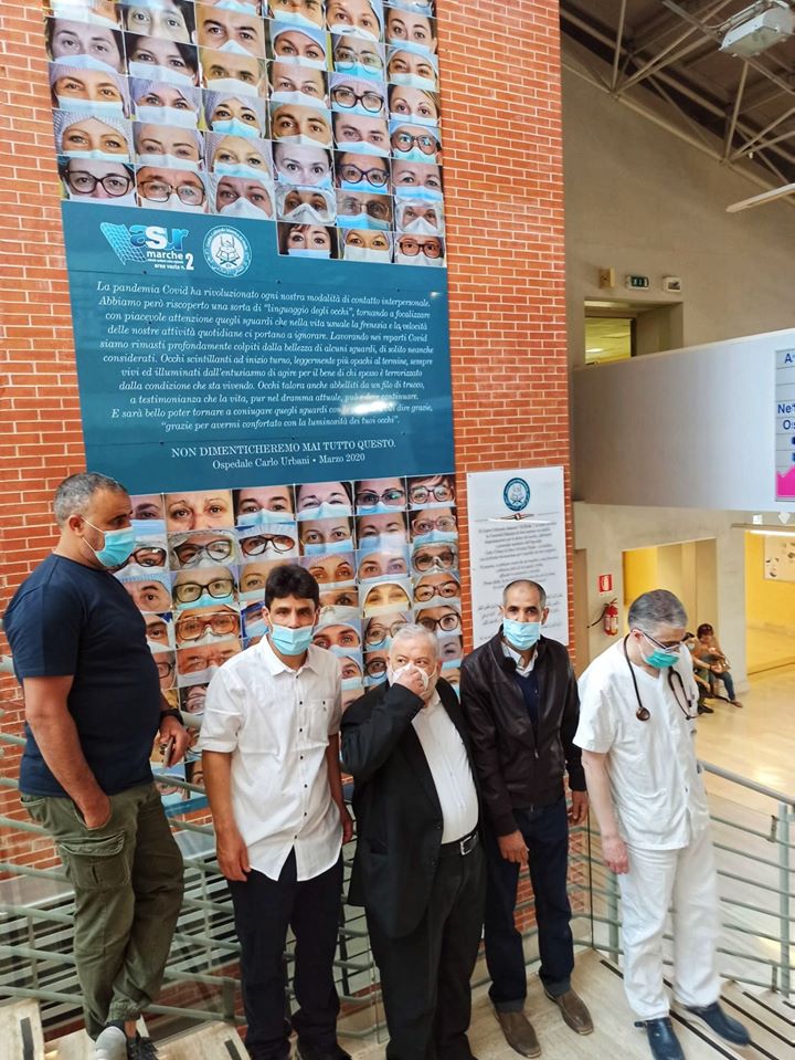 Inaugurata ieri la gigantografia con gli occhi ed i volti coperti dalla mascherina degli operatori sanitari dell’ospedale Carlo Urbani, in prima linea nella cura dei pazienti Covid in questi ultimi tre mesi. Il dono dei rappresentanti del centro culturale islamico jesino Al Huda a nome è stato ‘consegnato’ ieri dal presidente del centro culturale islamico, El Anouar El Miloudi, alla presenza delle autorità civili, sanitarie e religiose della città.