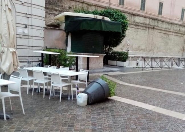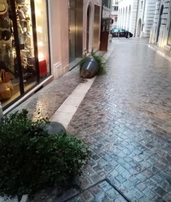 Le fioriere gettate a terra