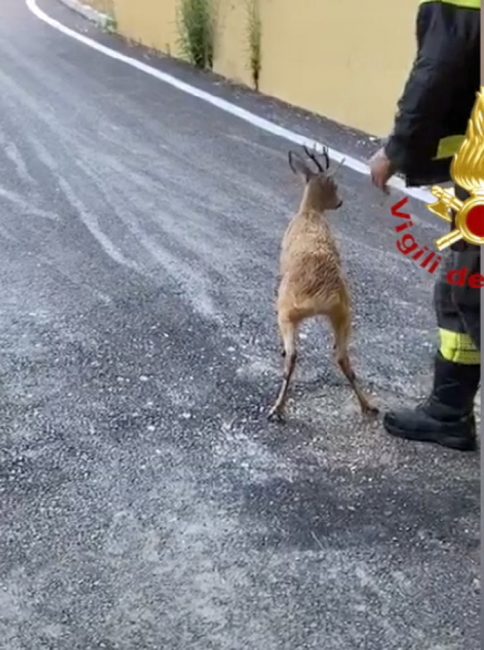 Un altro capriolo scivola nel canale di Sant’Elena: salvato dai vigili del fuoco