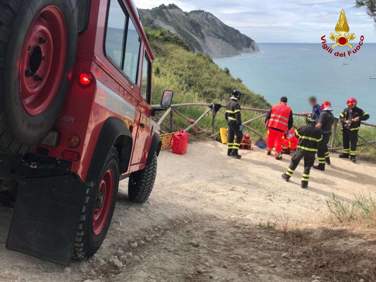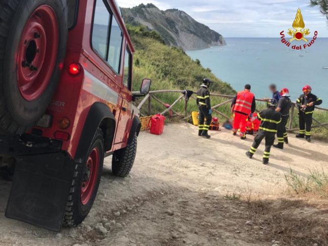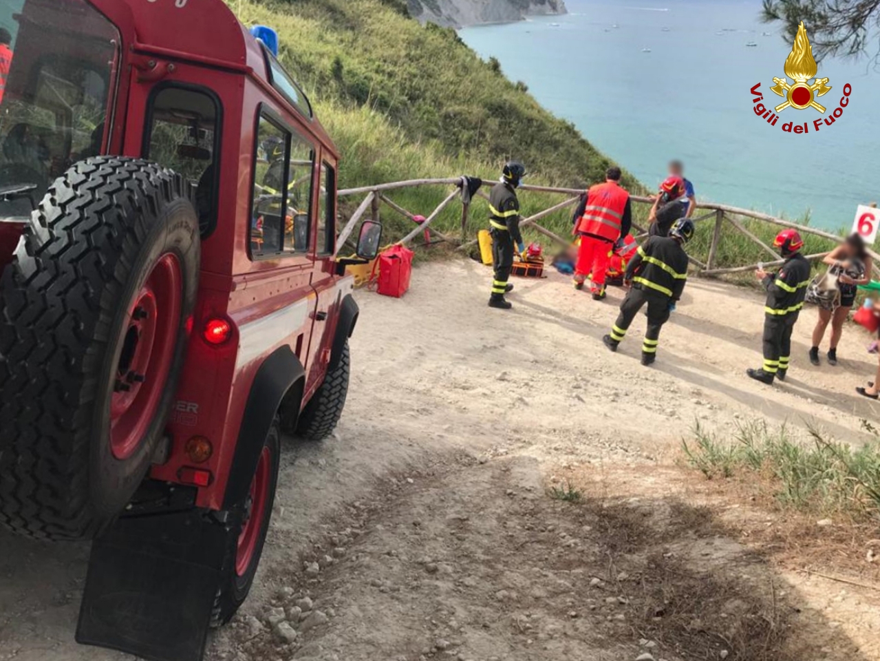 ANCONA - La ragazza è svenuta e sul posto sono arrivati i pompieri con la Croce azzurra di Sirolo per trasportarla a fino al mare da dove il gommone dei sommozzatori dei vigili del fuoco l'ha poi trasferita al molo di Portonovo per consegnarla alle cure della Croce Rossa per il ricovero all'ospedale di Torrette