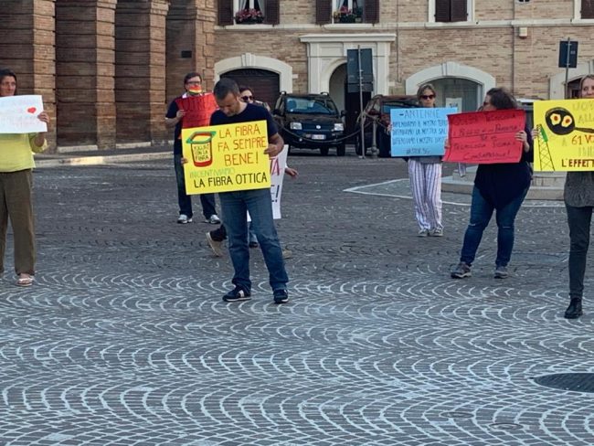 Un flash mob in piazza Boccolino per sensibilizzare ai rischio della tecnologia 5G. E’ quello che è andato in scena nel tardo pomeriggio di ieri a Osimo grazie ai sostenitori del comitato spontaneo di “Cittadini di Osimo e Ancona sud per una tecnologia sicura e consapevole”.