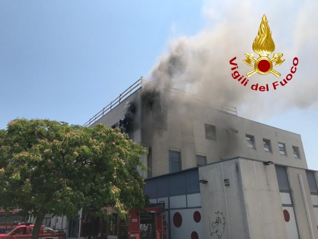 L’incendio sul tetto del complesso commerciale di via Abbagnano 3