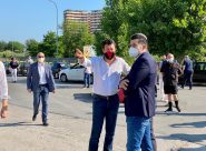 PORTO RECANATI – Il leader della Lega è tornato di nuovo nel palazzone dove si sono registrati diversi casi di coronavirus: «La situazione sanitaria è sotto controllo». L’idea per la futura amministrazione regionale: «Farlo tornare alla sua vocazione di residence». Giochi aperti per le comunali di Macerata: «Sceglieremo il candidato sindaco migliore»