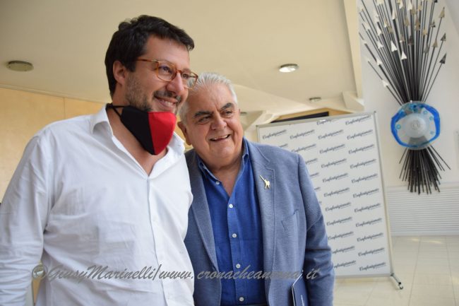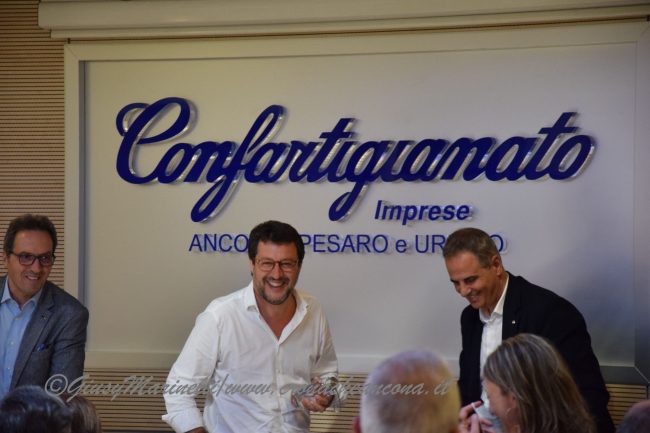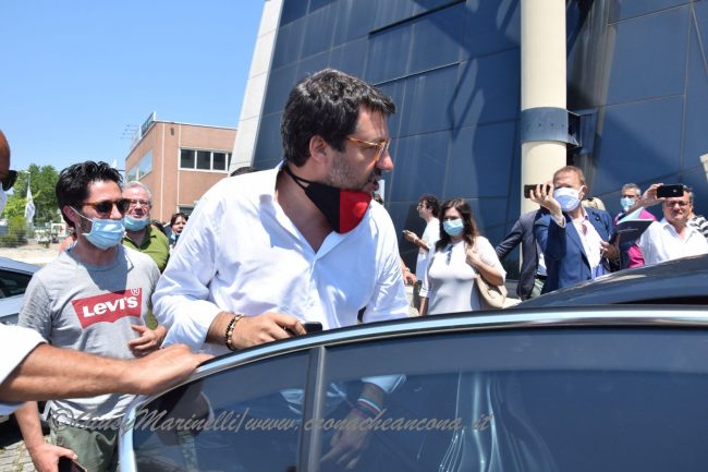 Alla Confartigianato, Salvini ha parlato dell’economia della regione ascoltando, a porte chiuse, le richieste degli «Artigiani e marchigiani che hanno le idee assolutamente chiare – ha detto Salvini prima di riprendere la strada per Villa Piccinetti a Fano -, che vogliono tornare a correre e a competere. Qua la Regione può fare tre cose: infrastrutture, quindi sbloccare i troppi cantieri aperti e fare quello che si promette da tempo; taglio della burocrazia che sta ingessando l’agricoltura, il turismo e soprattutto le piccole imprese marchigiane. Pensate che in agricoltura – ha detto -, la regione marche è l’ultima in Italia per fondi europei stanziati alle imprese e quindi c’è anche un margine di miglioramento e poi – avviandosi al terzo punto – cambiare, perché c’è tanta voglia di cambiamento e quindi per me, come Lega, è un orgoglio essere protagonista di ciò. C’era un centrodestra diviso 5 anni fa, adesso – ha sottolineato – c’è un centrodestra unito e compatto con una Lega forte. I problemi sono dall’altra parte quindi, non vedo l’ora che arrivi settembre perché qua ci sono risposte».