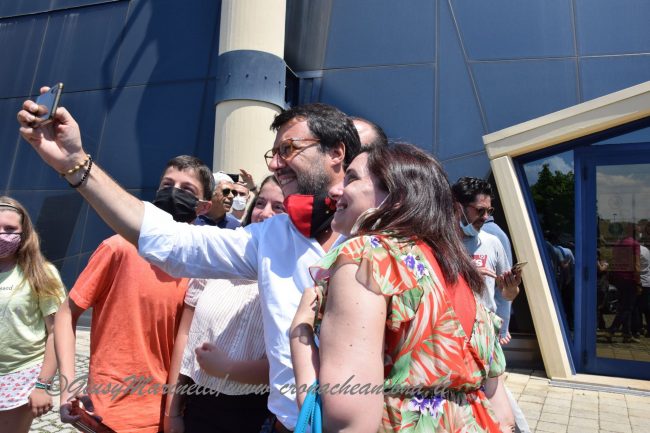 All’uscita dalla sede della Baraccola, ad attendere Salvini vi era un gruppo di persone che hanno voluto scattare qualche selfie al quale il leader del Carroccio si è prestato.