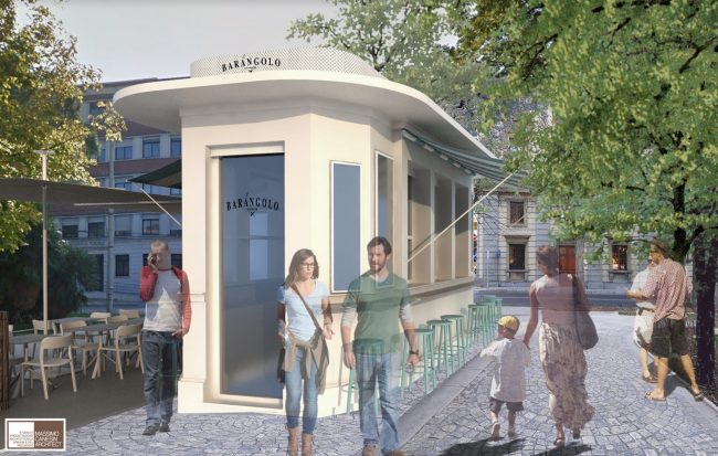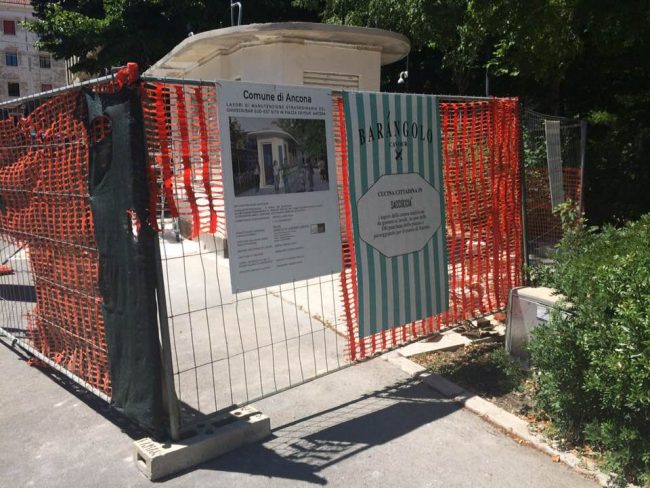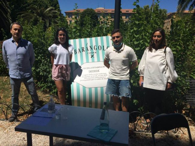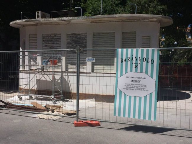 Neanche la “fatica” di estrarle dal guscio. Le raguse, i molluschi insaporiti dal sugo in porchetta, ve li ritroverete già morbidi a farcire la ‘Saccoccia’, una tasca di pane che è il brand di punta del nuovo Baràngolo, quasi pronto ad accogliere cittadini e turisti in piazza Cavour, corner sotto l’ex Inps. «Né gourmet né fast food, il nostro stile è tutta un’altra cosa, cibo da passeggio, oltre che naturalmente da gustare qui o in una delle tante panchine di questa storica piazza» hanno spiegato stamattina in conferenza stampa Laura Papa e Michael Salerno, meno di 50 anni in due, i giovanissimi gestori tuttofare, o quasi, del rinnovato e completamente ristrutturato chiosco caduto nell’oblio, dopo che per qualche anno , col nome di ‘Isola di Paspa’, era stato guidato dal mastro birraio Mauro Franceschini (titolare di ‘Paspartu’). Cibo, drink eterogenei, look del bar, «tutto in linea con la tradizione locale, quella di prodotti tutti anconetani o marchigiani di qualità garantita, quella dello stupendo ampio verdeggiante scenario che ci circonda» ha sottolineato Lorenzo Papa, padre di Laura, il ‘ragoniere-segretario’ di questa impresa avventurosa e seducente, che ha curato la pratica per l’aggiudicazione del bando per una gestione di 6 anni emesso dal Comune e i rapporti (con prescrizioni) della Soprintendenza. Un posto votato al gusto e alla socio-ricreatività aggregativa, il Baràngolo. Quanto al gusto – quando aprirà i primi di agosto – ci sarà da leccarsi i baffi: dentro la ‘Saccoccia’, a scelta, varie leccornie: bocconcini di pollo alla cacciatora, salame ciauscolo con pecorino (per fare un paio di esempi). «Il che equivale a un pasto completo – spiega Laura – per chi ha meno fame c’è la ‘Saccoccetta’, e poi ci sono le alici, le patatine fritte, le olive all’ascolana, tutto genuino e a km zero, pane compreso».