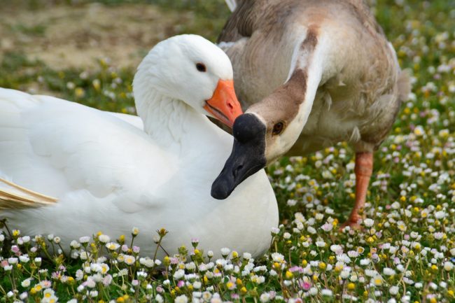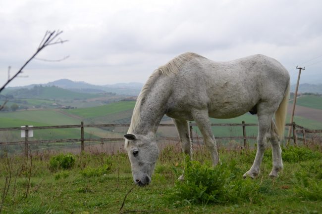 Quando siamo arrivati al civico 408 di via di Jesi, ci è parso di essere catapultati in un’altra magica eco-dimensione. Con Anna Rita, quattro cani ad accoglierci festosamente, ad accompagnarci lungo il vialetto di ghiaia che divide in due la parte principale del rifugio per animali, di circa 4 ettari. Da un lato la zona del laghetto artificiale, circondata da una striscia di terreno e recintata. Nell’acqua dolce sguazzano circa 20 tartarughe, 13 oche, 15 anatre mute e 11 germani reali; dall’altro uno spazio verde per le galline ovaiole, una voliera a cielo aperto per piccioni – che hanno difficoltà a volare – e il paddock di Turiddu detto Turi (il cavallo), che divide il suo ampio spazio con una pecorella; e che dire dei 4 gabbiani che ti sgambettano attorno per darti il benvenuto? Nel recinto razzolano le galline, che verso sera vanno a riposare in casette di legno, o si addormentano adagiate sui grossi rami degli alberi. Sedici pavoni, 5 gatti, 1 tacchino, 1 quaglia e alcuni galli scorrazzano invece liberi. Anna Rita cura pure un uliveto e coltiva un orto vicino alla casa colonica ristrutturata nel 1995 e riconvertita nell’agriturismo Le Chichine nel 2007. Poi, via via, la decisione presa il primo gennaio 2017 del passaggio dall’attività imprenditoriale dell’agriturismo a quella di onlus rifugio e volontariato. «Quando gestivo l’agriturismo – spiega Anna Rita – allevavo pollame e oche, che finivano nei piatti dei clienti. Mia figlia Alessia mi ha parlato dell’animalismo e della cultura vegana. Ho capito che gli animali soffrono come gli esseri umani, spesso a causa loro. E in famiglia siamo diventati tutti vegani e abbiamo sposato la causa, facendo del nostro meglio per farli vivere il più dignitosamente possibile». Ogni “residente” di questo rifugio si è lasciato alle spalle vicende da incubo. Turi è stato segregato nel box di una stalla per 3 anni, ha contratto una malattia alle vie respiratorie, a 20 anni un giovane l’ha portato a Le Chichine, ora ne ha 35 e sta benone. Anna Rita: «I gabbiani erano rimasti feriti gravemente alle ali perché incagliatisi in reti e lenze da pesca. Uno era stato investito da un’auto. Erano condannati a morte. Il Centro recupero animali selvatici di Jesi (Cras) li ha affidati a noi. Non possono volare, ma sono salvi e al sicuro». Il viso di Anna Rita si riempie di luce: «Sai quanto sono intelligenti gli uccelli? I galli ad esempio, se li ascolti bene, riesci a distinguere i diversi suoni e significati dei loro chicchirichì. Li senti chiamare le galline, dir loro ‘abbiamo qualcosa per voi’, e a volte hanno davvero qualcosa da beccare in condivisione».