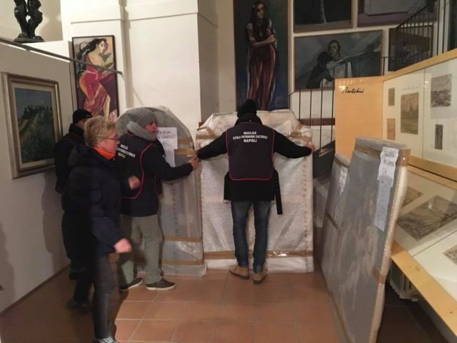 Novembre 2016: carabinieri del Nucleo tutela patrimonio artistico trasferiscono le opere salvate dal terremoto nei locali del museo civico di Palazzo Campana
